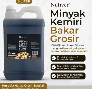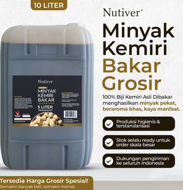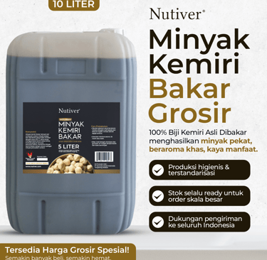 Kami memproduksi minyak kemiri bakar dan murni, serta mendukung maklon dan pembelian grosir.