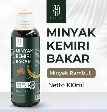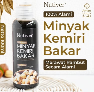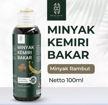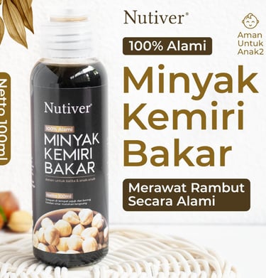 Komposisi 50% minyak Kemiri Bakar Murni & 50% Minyak Kelapa Murni, 100% Tanpa Bahan Kimia